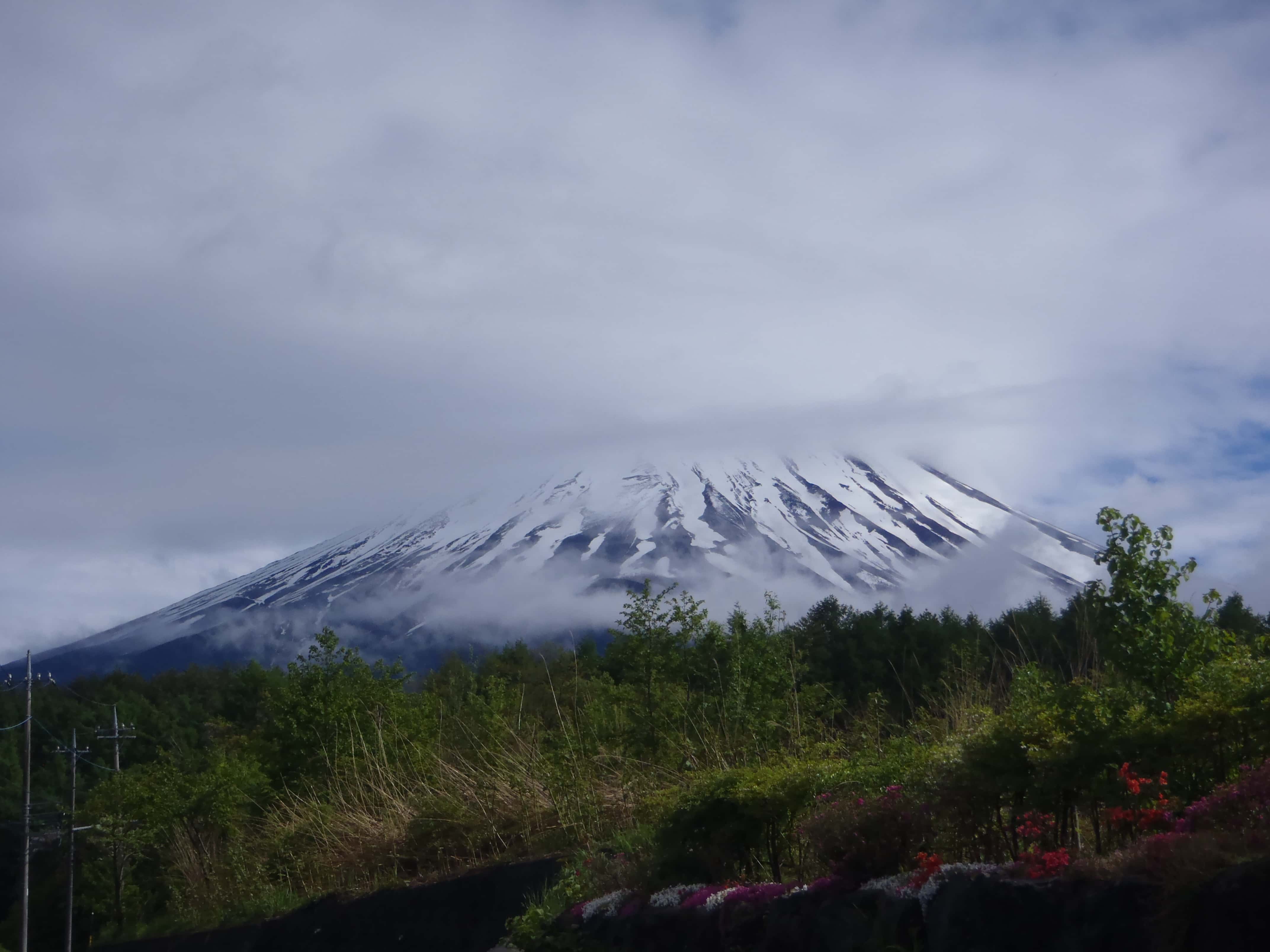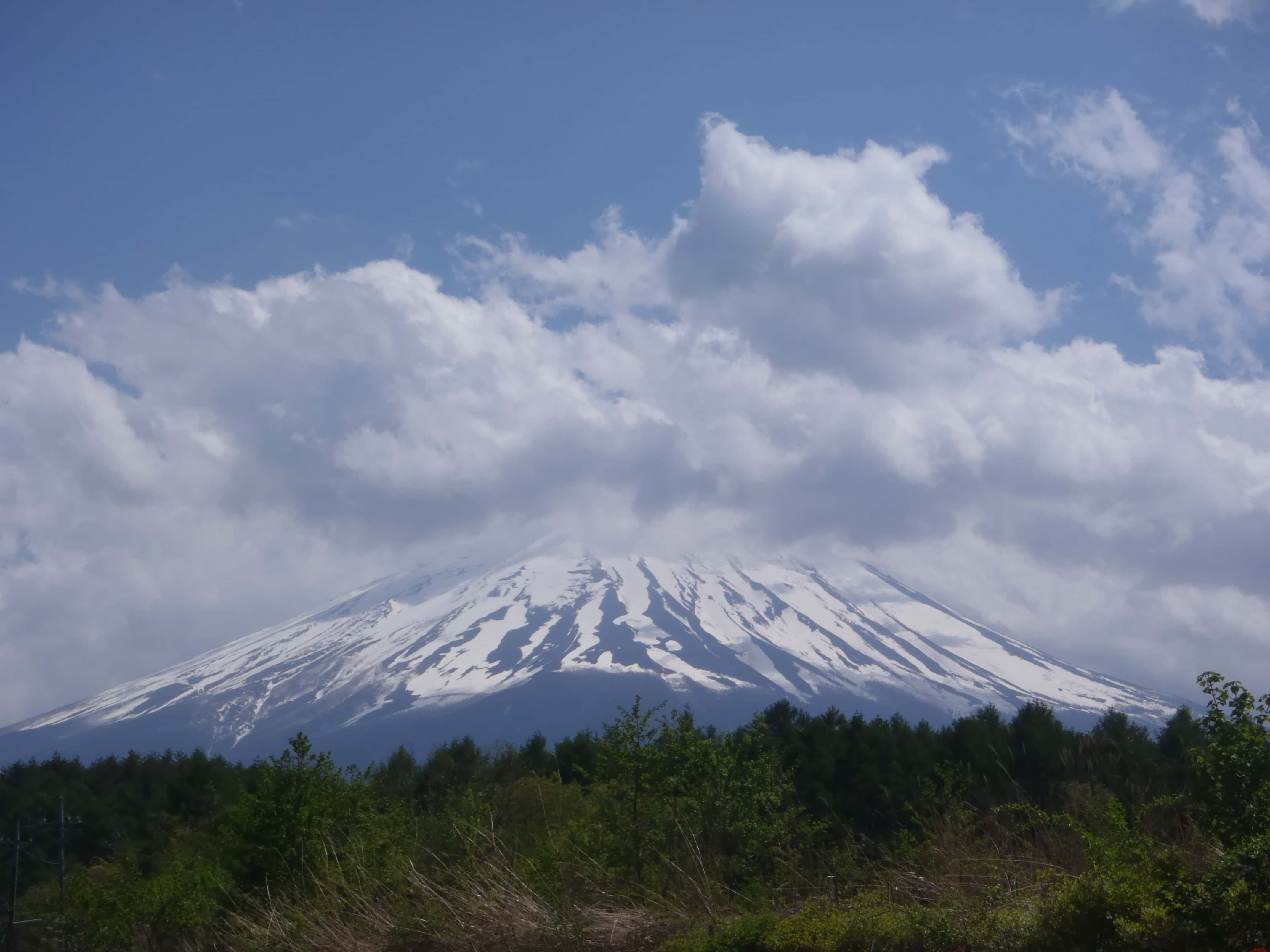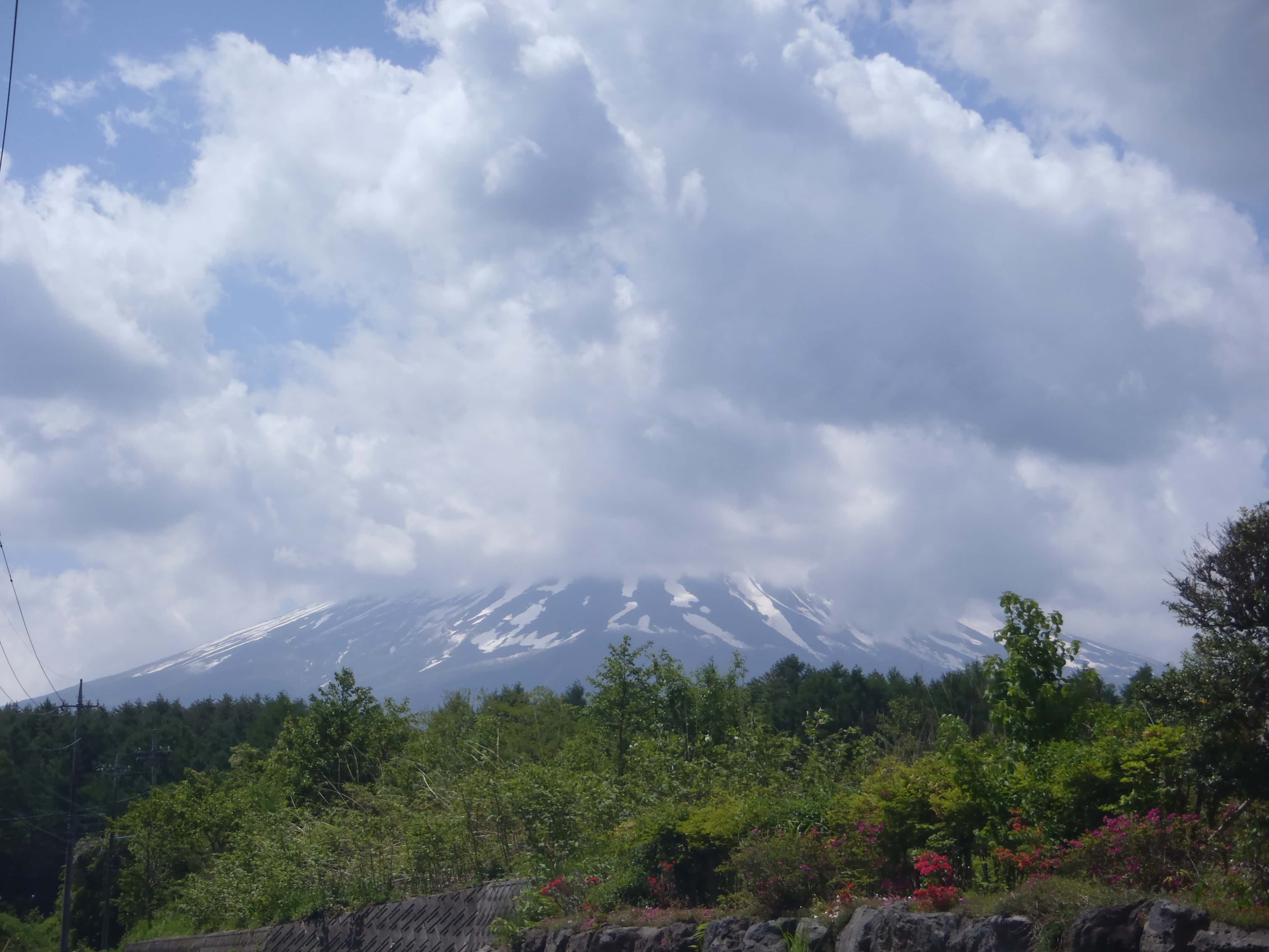 富士山は雲がかかっていて